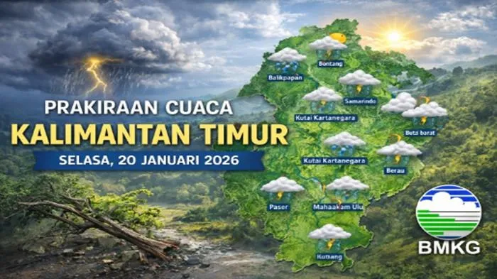 TRIBUNKALTIM.CO - Badan Meteorologi, Klimatologi, dan Geofisika (BMKG) merilis prakiraan cuaca untuk 10 daerah di Kalimantan Timur pada Selasa, 20 Januari 2026.