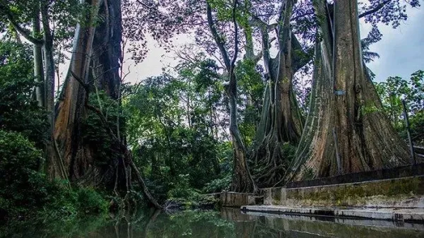 Pohon-pohon tersebut memiliki diameter sekitar 1 hingga 3 meter dengan ketinggian mencapai 50 meter, menciptakan sensasi mandi di bawah naungan pepohonan raksasa.