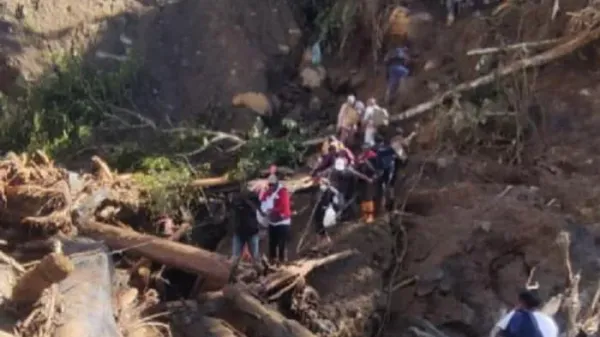 "Ada juga badan jalan yang dipenuhi bebatuan karena longsor. Tapi kami dengan penuh kehati-hatian tetap berupaya melintas," katanya.