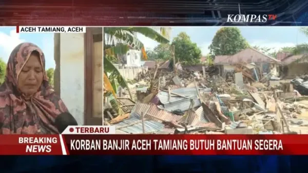 Jurnalis Kompas TV, Emirsyah Purba, yang berhasil menjangkau wilayah Karang Baru, Kota Kuala Simpang, menyaksikan langsung kondisi warga yang hidup di atas puing-puing rumah mereka.