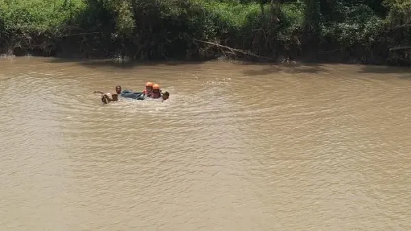 "Dia tidak ikut berenang, cuma mau cuci tangan terus tiba-tiba terpeleset masuk sungai," katanya.