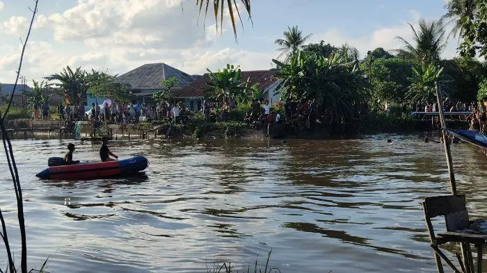 Pantauan Sripoku.com dan Tribunsumsel.com di lokasi, warga ramai di tepian Sungai Kedukan melihat proses pencarian tubuh korban yang sedang dilakukan kepolisian bersama SAR Basarnas.