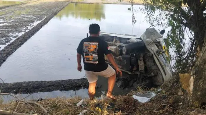 Pengemudi diduga tidak mampu mengendalikan laju kendaraan sehingga mobil melebar ke sisi kanan jalan.