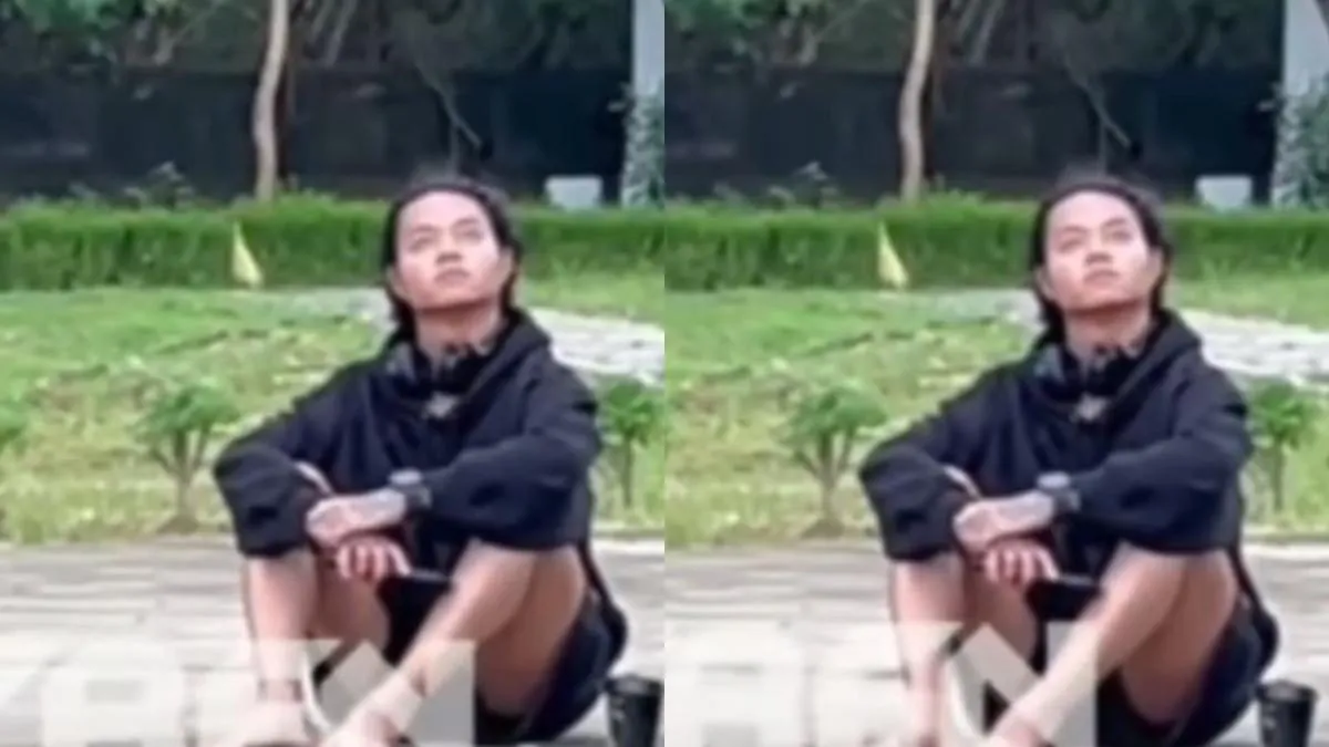 Ia duduk di jalan, tanpa alas kaki dan menatap langit.
