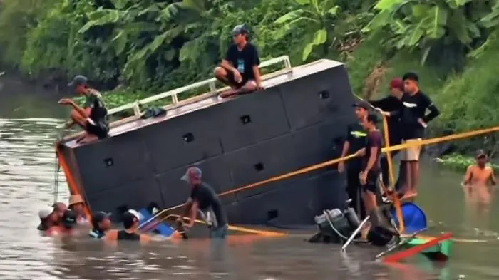 Ia menyebut kejadian itu terjadi di bantaran sungai sekitar pukul 16.30 WIB. AKP Imam juga menjelaskan seluruh komponen sound horeg termasuk lighting dan dua perahu ikut tenggelam.