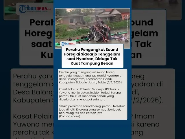 Grid.ID - Sebuah perahu pengangkut sound horeg 1 ton tenggelam saat tradisi nyadran jelang Ramadan 2026. Insiden itu terjadi di Desa Balongdowo, Kecamatan Candi, Kabupaten Sidoarjo pada Sabtu, (7/2/2026).