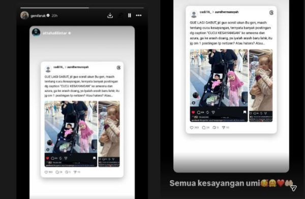Hal itu diketahui dari postingan Geni yang selalu menyematkan kata 'cucu kesayangan' pada semua cucu-cucunya termasuk pada anak Atta dan Aurel yakni Ameena dan Azura.