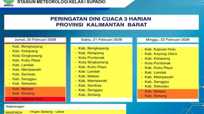 Baca juga: BMKG: Waspada, 4 Perairan NTT Ini Berpotensi Gelombang Tinggi 4 Meter 21-24 Februari 2026Masyarakat juga diimbau waspada terhadap potensi hujan sedang di Mamuju dan Merauke, serta hujan ringan di wilayah lainnya seperti Mataram, Makassar, hingga Jayapura.
